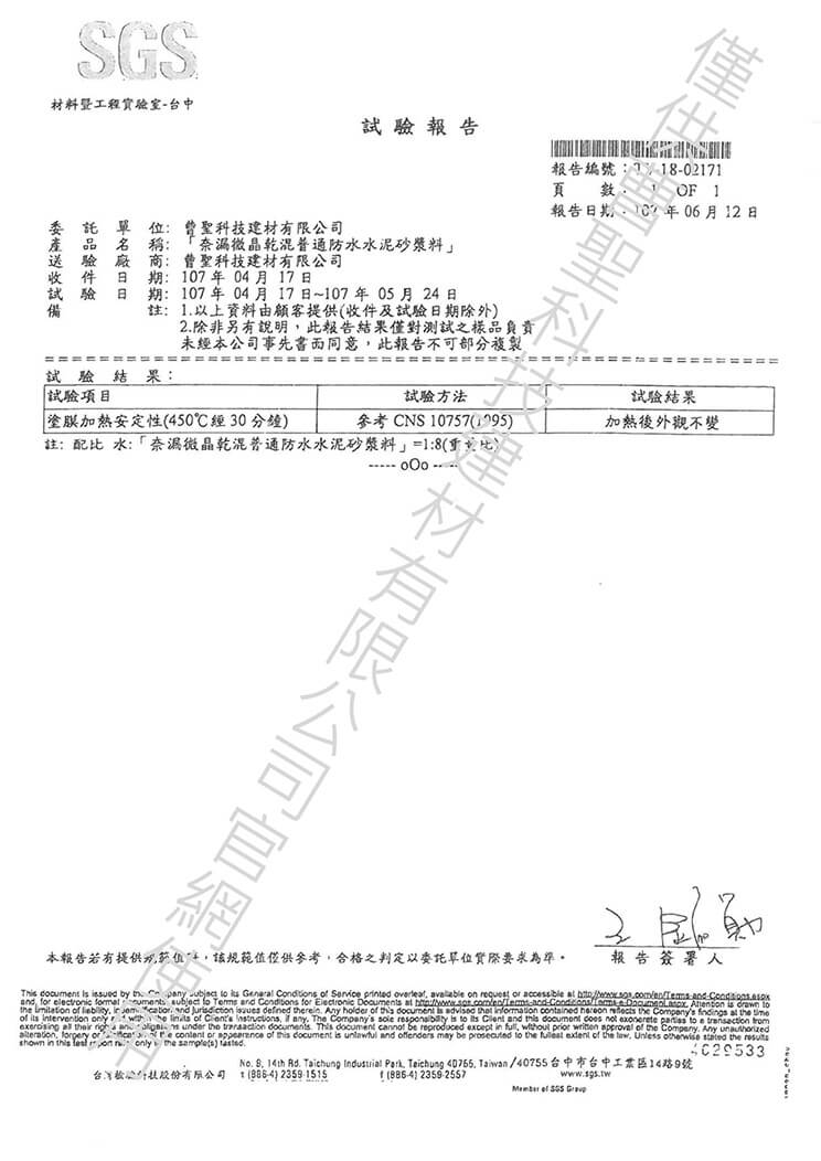 防水沙漿試驗報告